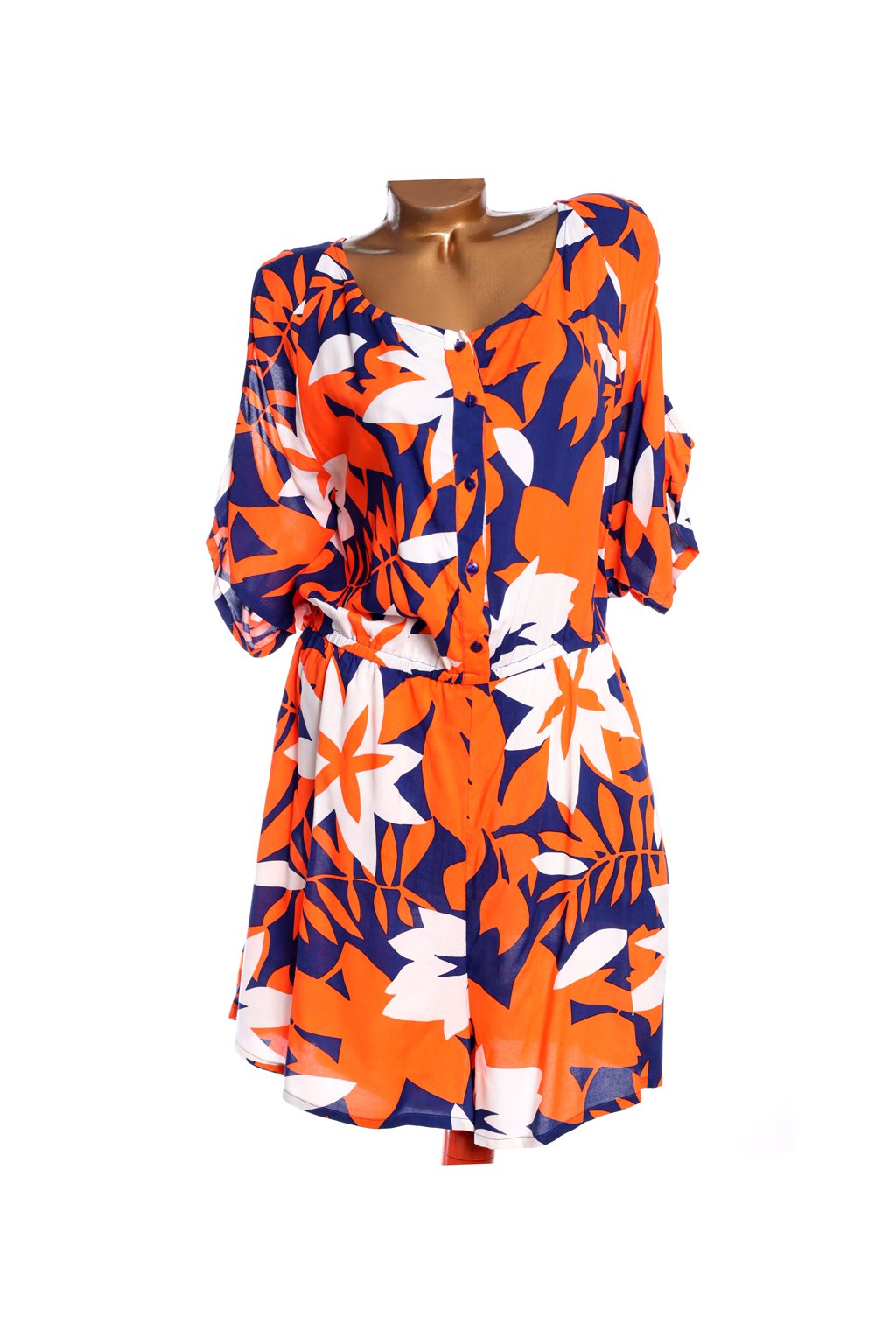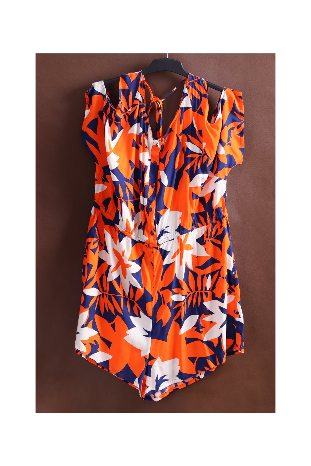 Dámský modro-bílo-oranžový vzorovaný letní overal / Simply Be / XXXXL (54) / ANGLIE