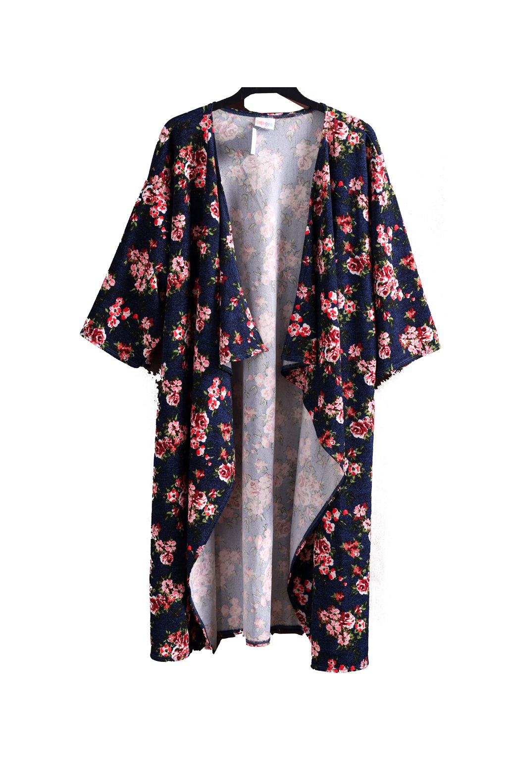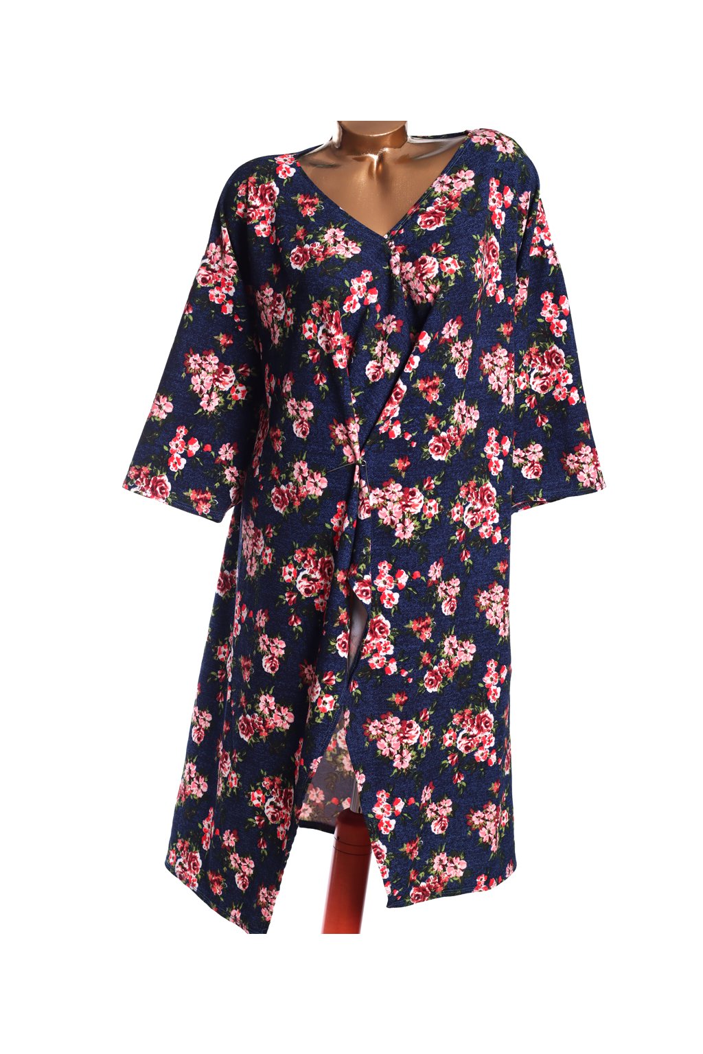 Dámský modrý přehoz s růžovými květy / LULA ROE / XXXL (50) / UK 22/ ANGLIE