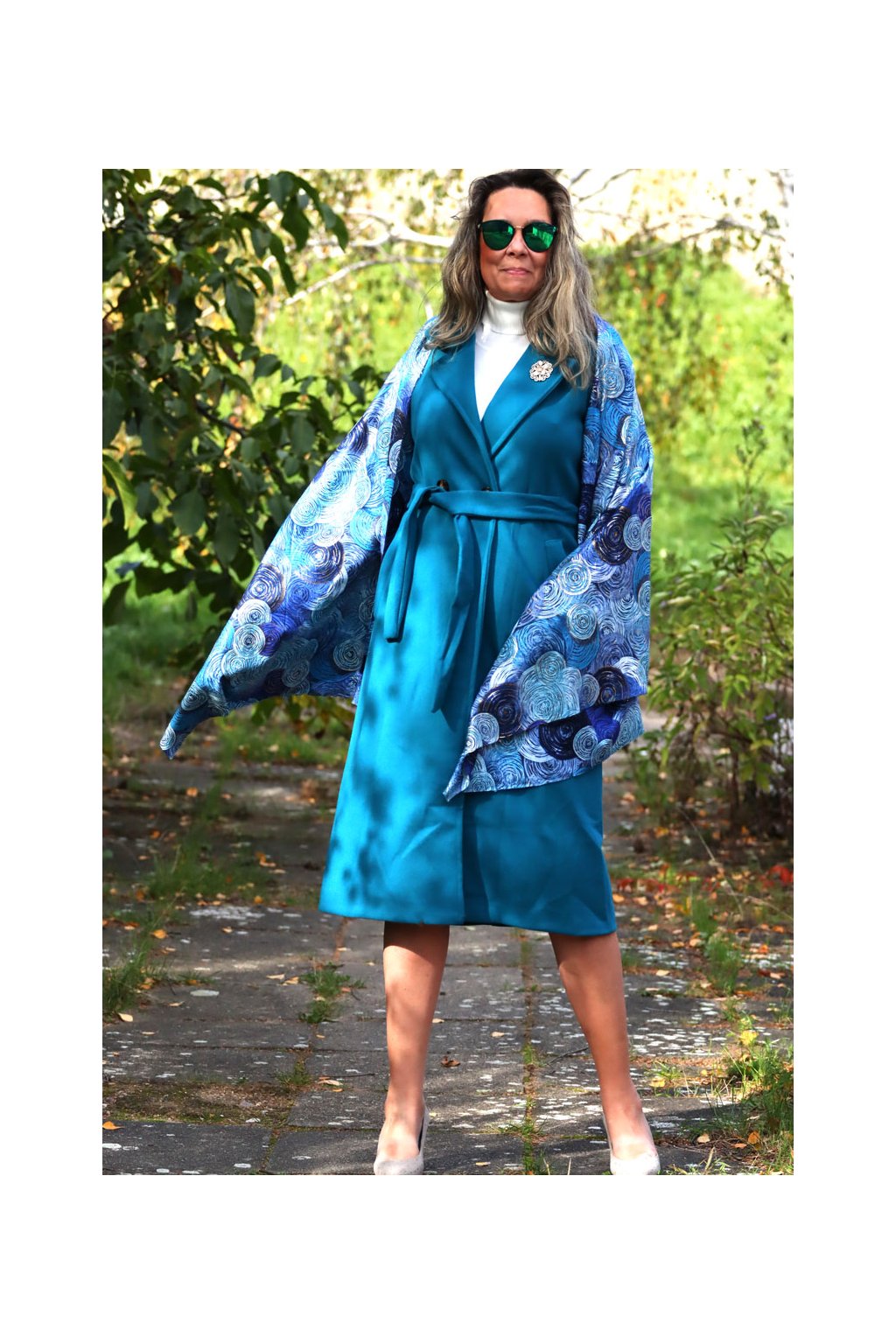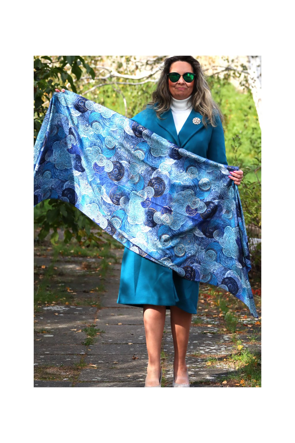 Dámský modrý šátek / ORCHIDEJ / délka 194 CM / MODA ITALY