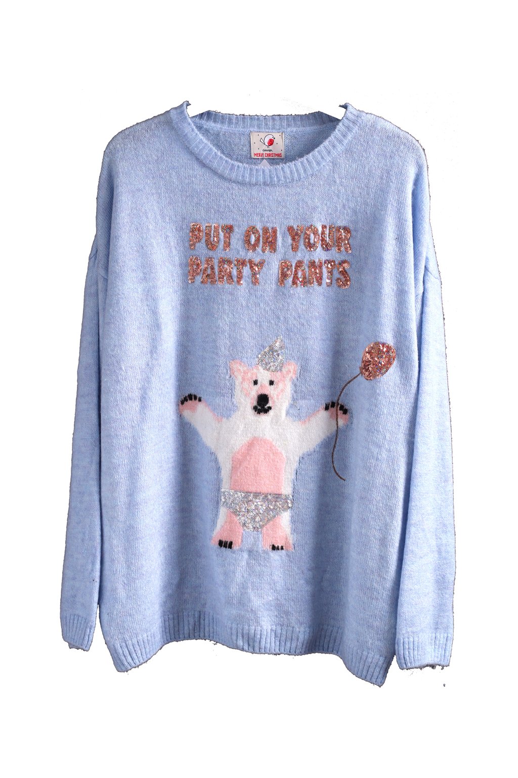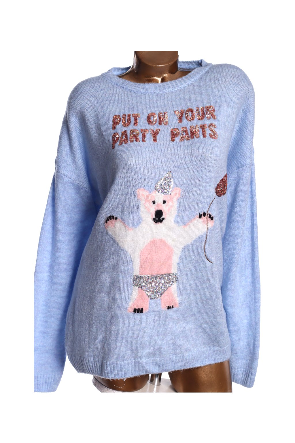 Dámský modrý svetr s medvídkem a flitrovým vánočním nápisem / GEORGE / XXXXL (48/50) / UK 20/22 / ANGLIE