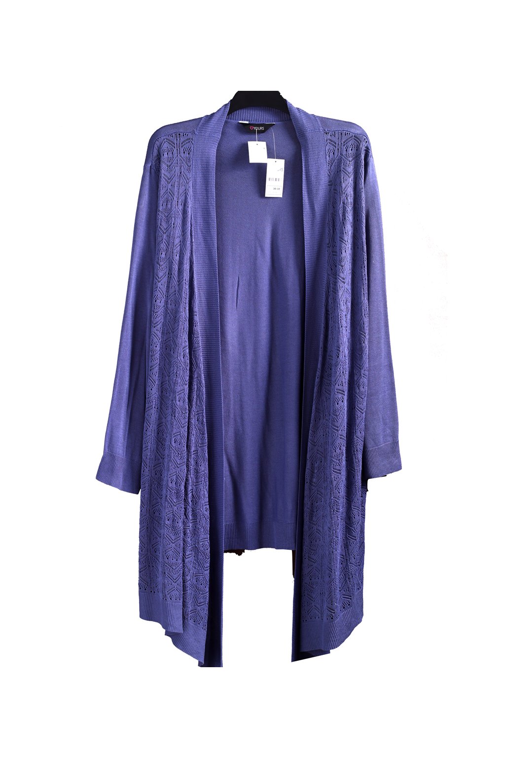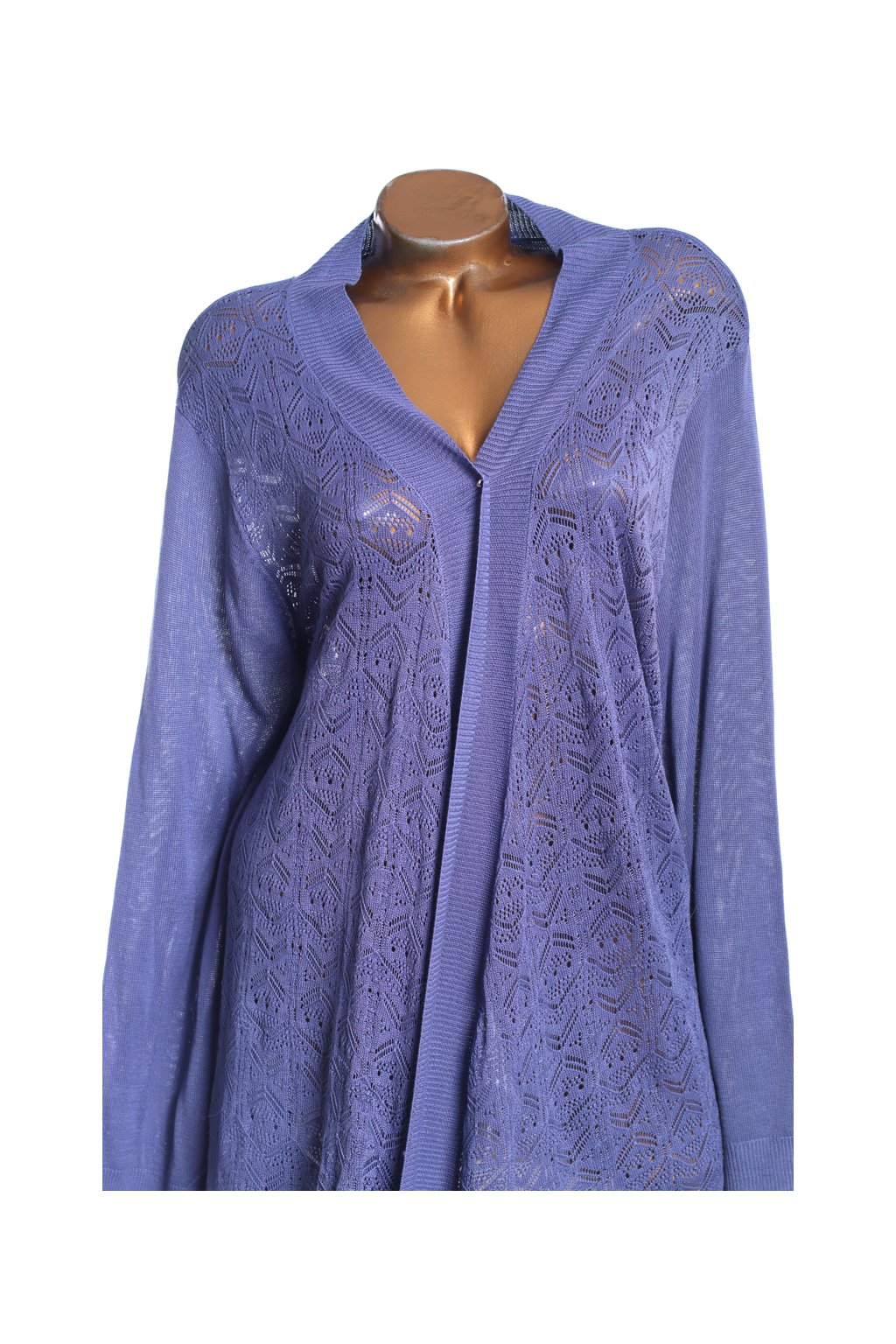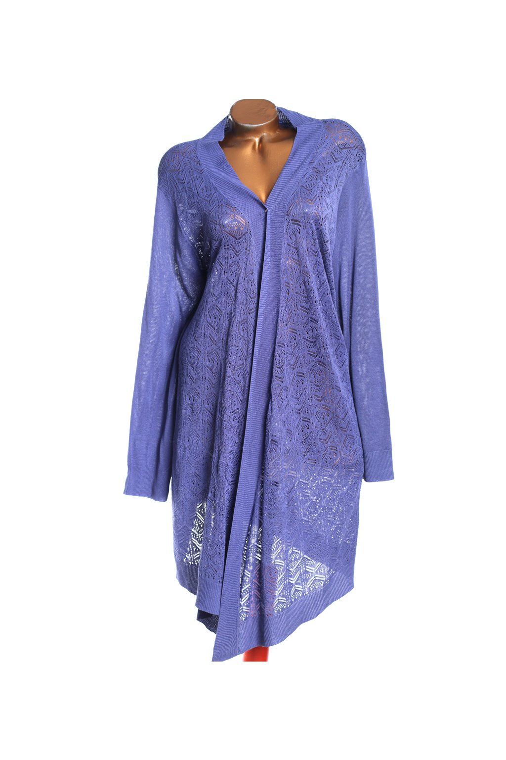 Dámský luxusní modrý, dlouhý svetr/ kardigan s pěkným vzorem / Yours - XXXXL+ (58/60) / ANGLIE