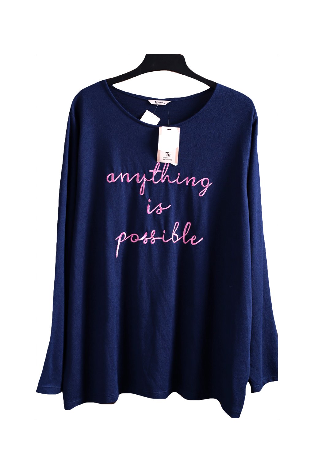Dámský modrý svetřík s nápisem/ TU/ XXXXL (52) / UK 24 / ANGLIE