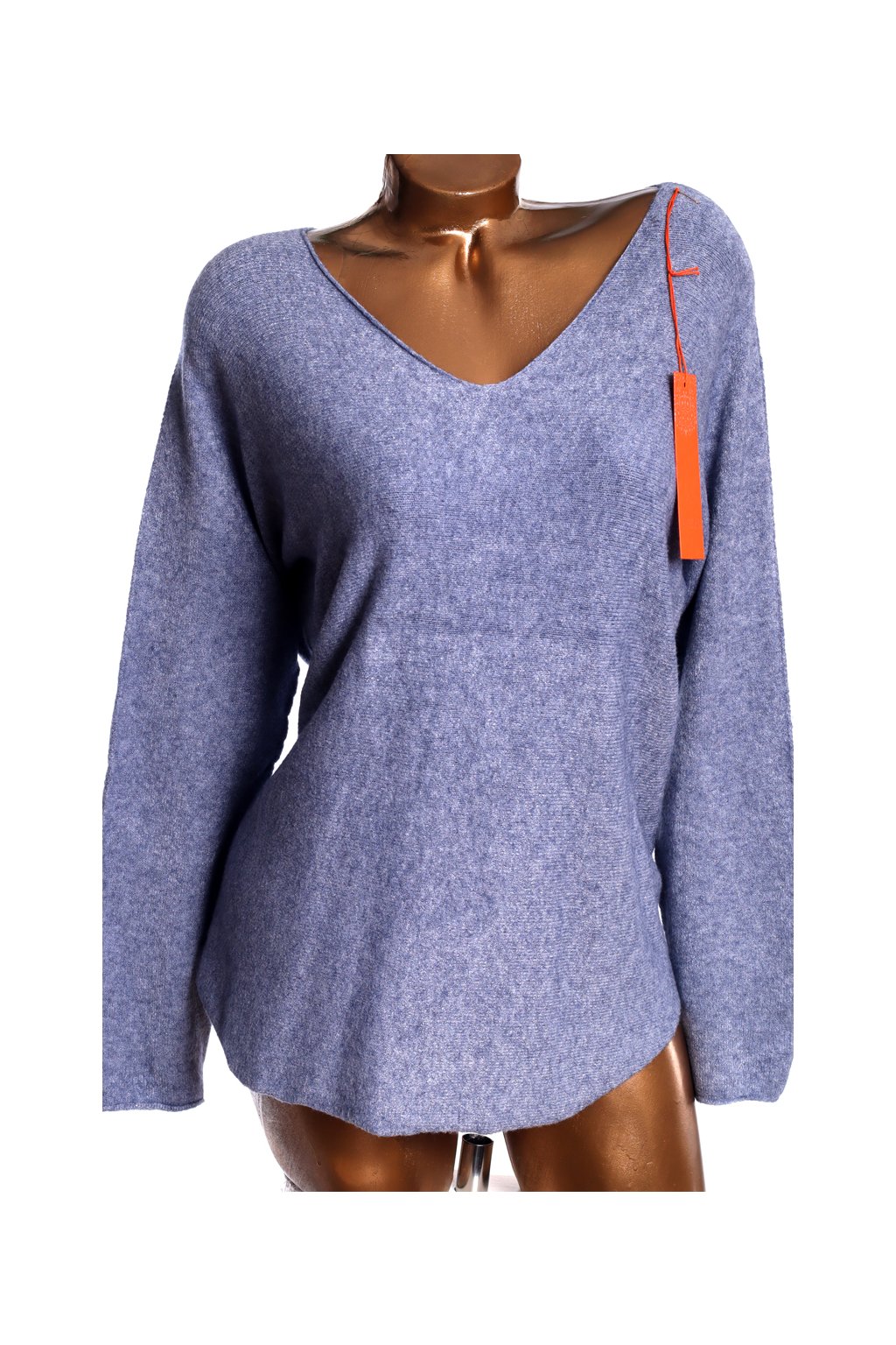 Dámský pletený modrý svetr s výstřihem do V / XXXXL (48/50) / UK 20/22 / ANGLIE