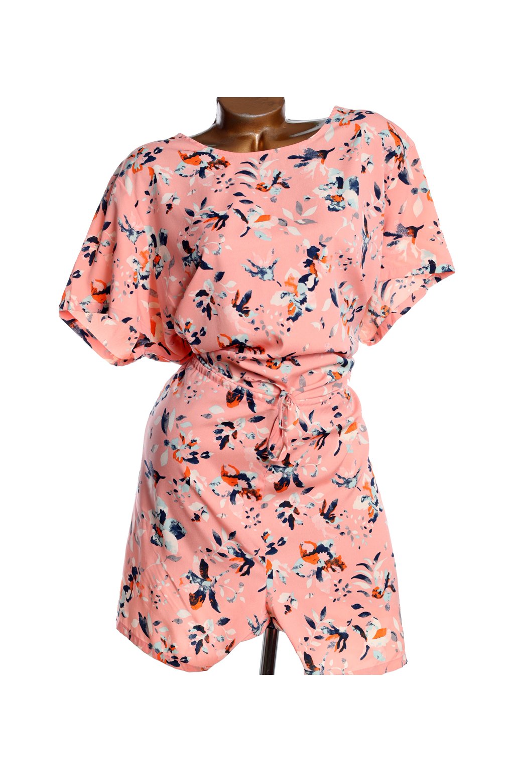 Dámský růžový lehký overal s barevným vzorem / JUNAROSE / XXXXL (54) / UK 26 / ANGLIE