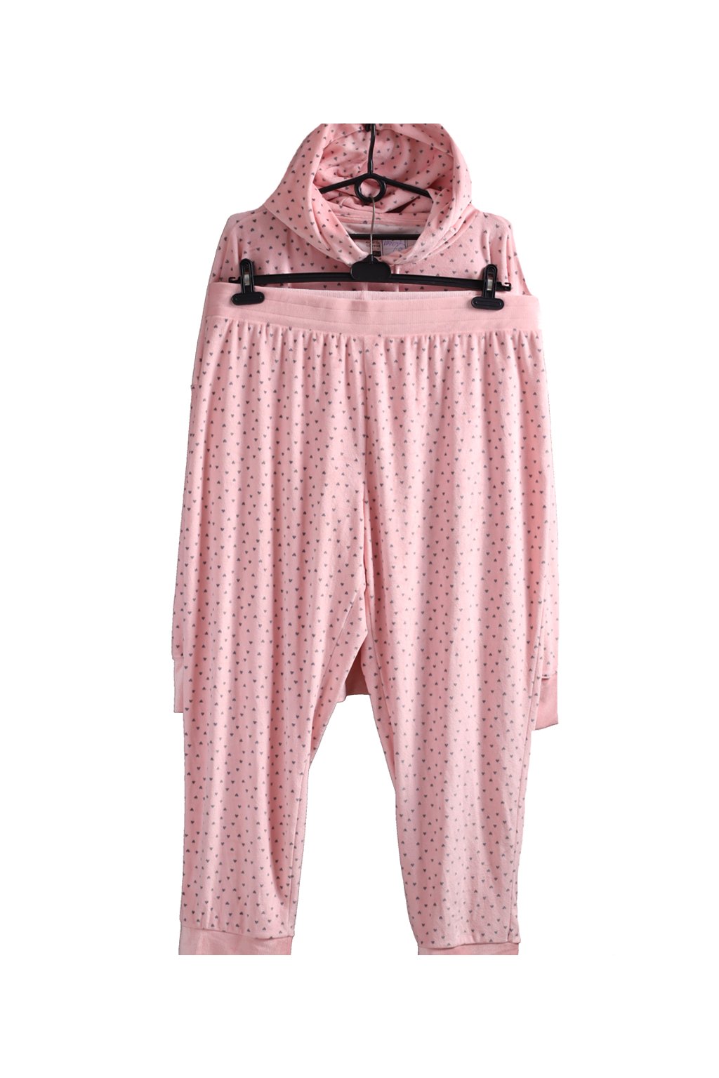 Dámský růžový teplý domácí komplet/pyžamo se srdíčky / F&F / XXL (48/50) / UK 20/22 / ANGLIE