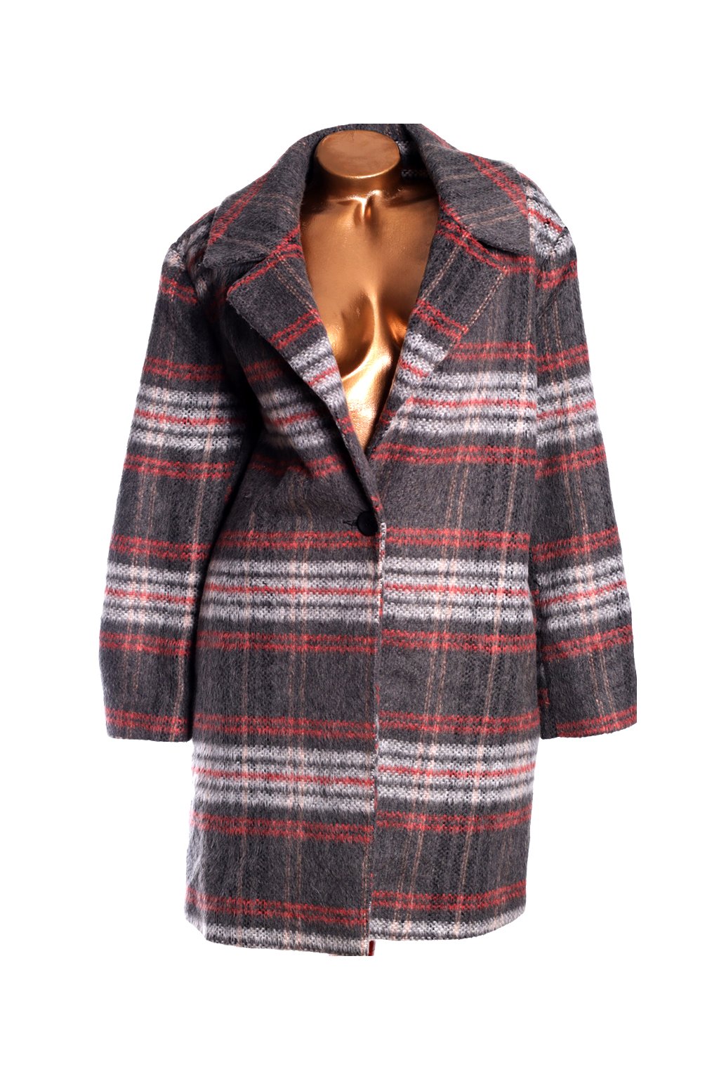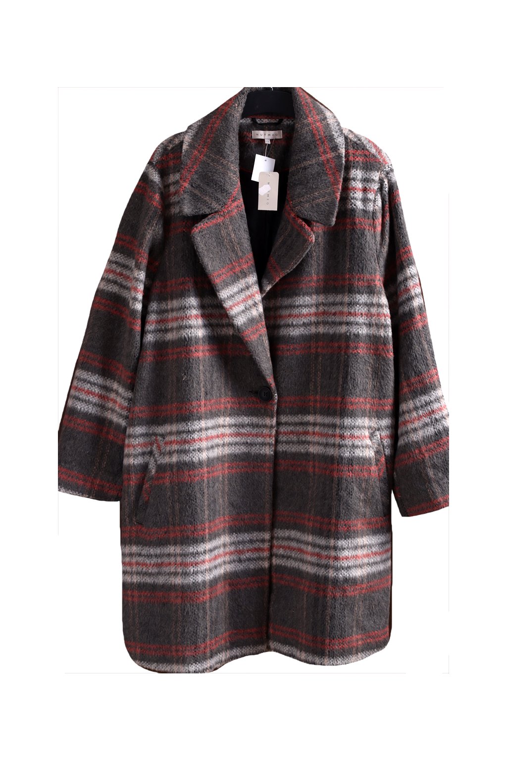 Dámský šedo-bílo-červený kostkovaný kabát / NUTMEG / XXXL (50) / UK 22 / ANGLIE
