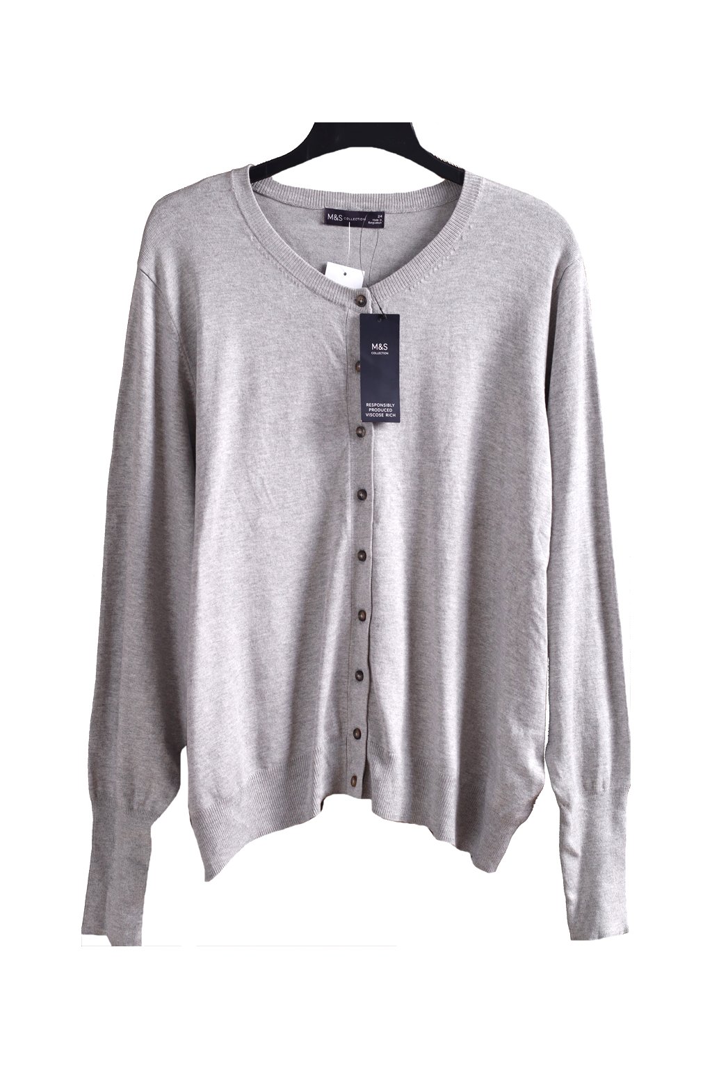 Dámský šedý propínací svetřík / Marks & Spencer / XXXXL (52) / UK 24 / ANGLIE