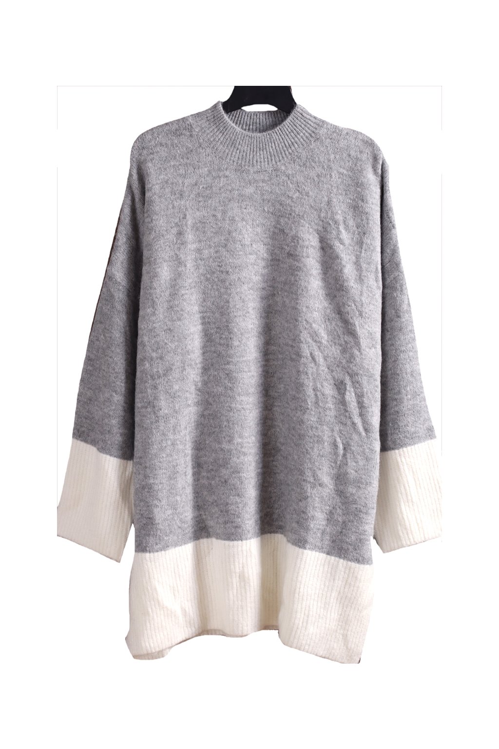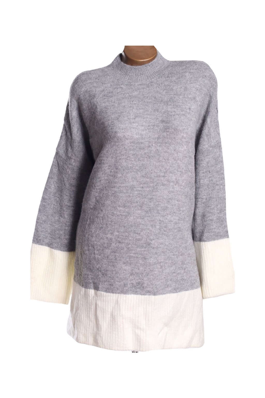 Dámský šedý svetr/svetrov šaty s bílým lemováním / JD WILLIAMS / XXXXL (48/50/52+) / UK 20/22 / ANGLIE