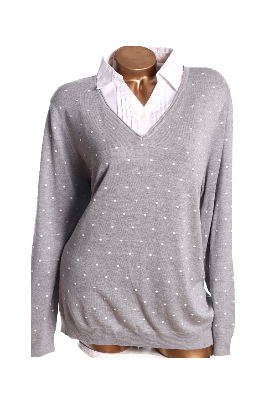 Dámský šedý svetr s bílými puntíky 2v1 s košilí / BONMARCHÉ / XXXL (48) / UK 20 / ANGLIE