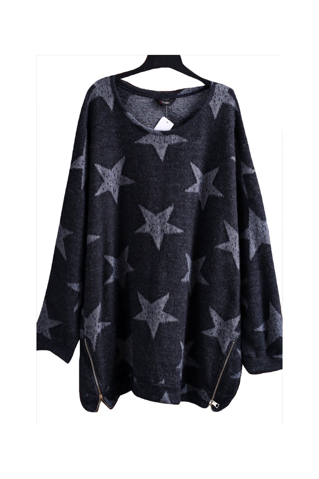 Dámský šedý svetr s hvězdičkami a třpytkami / YOURS / (58/60 ) / UK 30-32 / ANGLIE