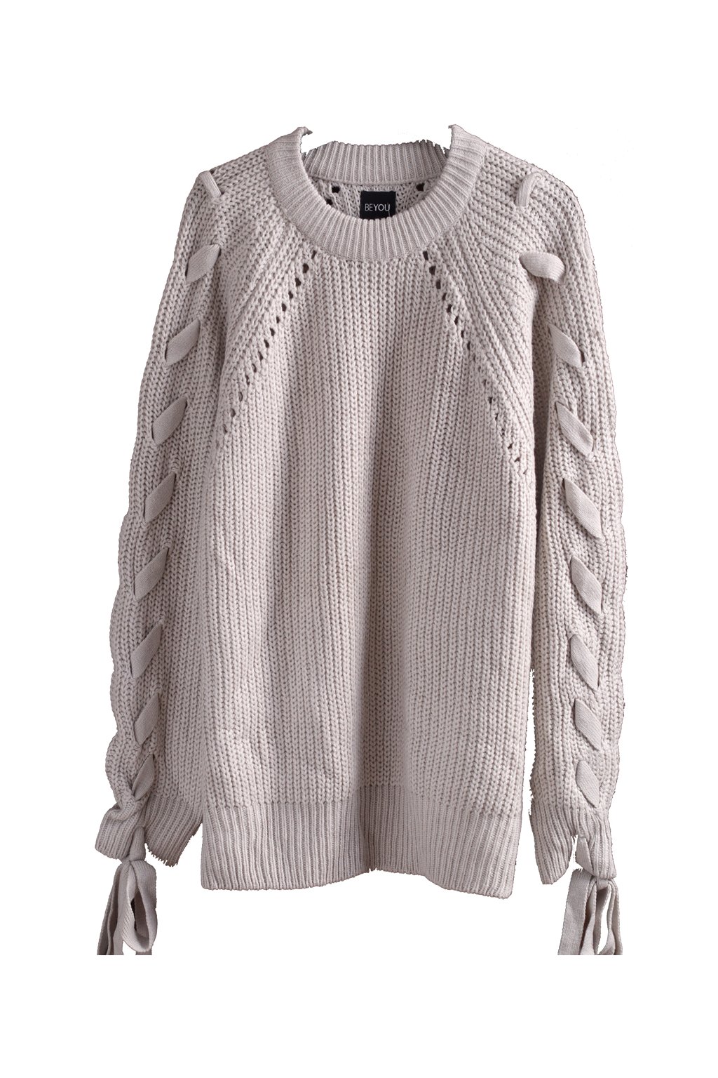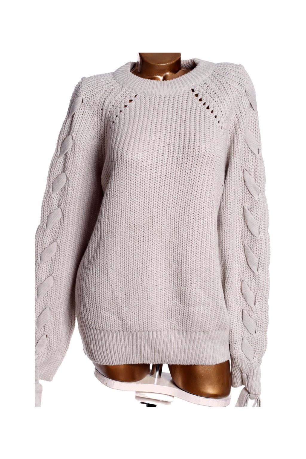 Dámský šedý svetr s provázáním na rukávech / BE YOU / XXL (44/46) / UK 16/48 / ANGLIE