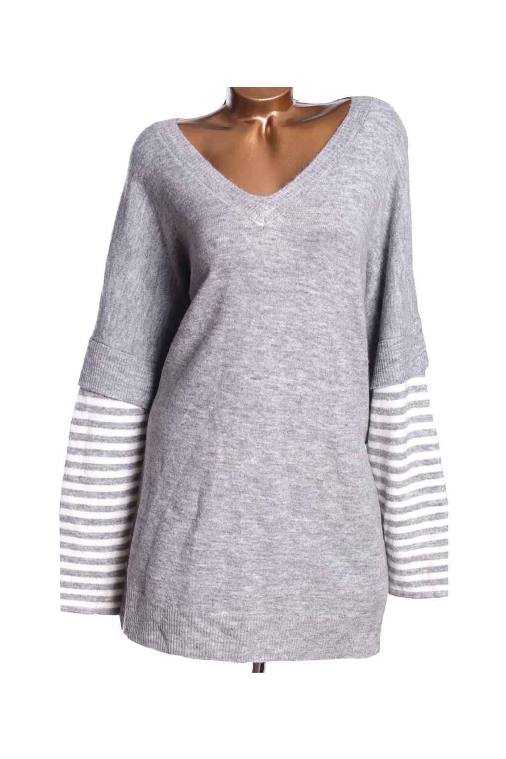 Dámský šedý svetr/svetrové šaty s pruhovanými rukávy / BONMARCHÉ / XXXXL+ (56) / UK 28 / ANGLIE