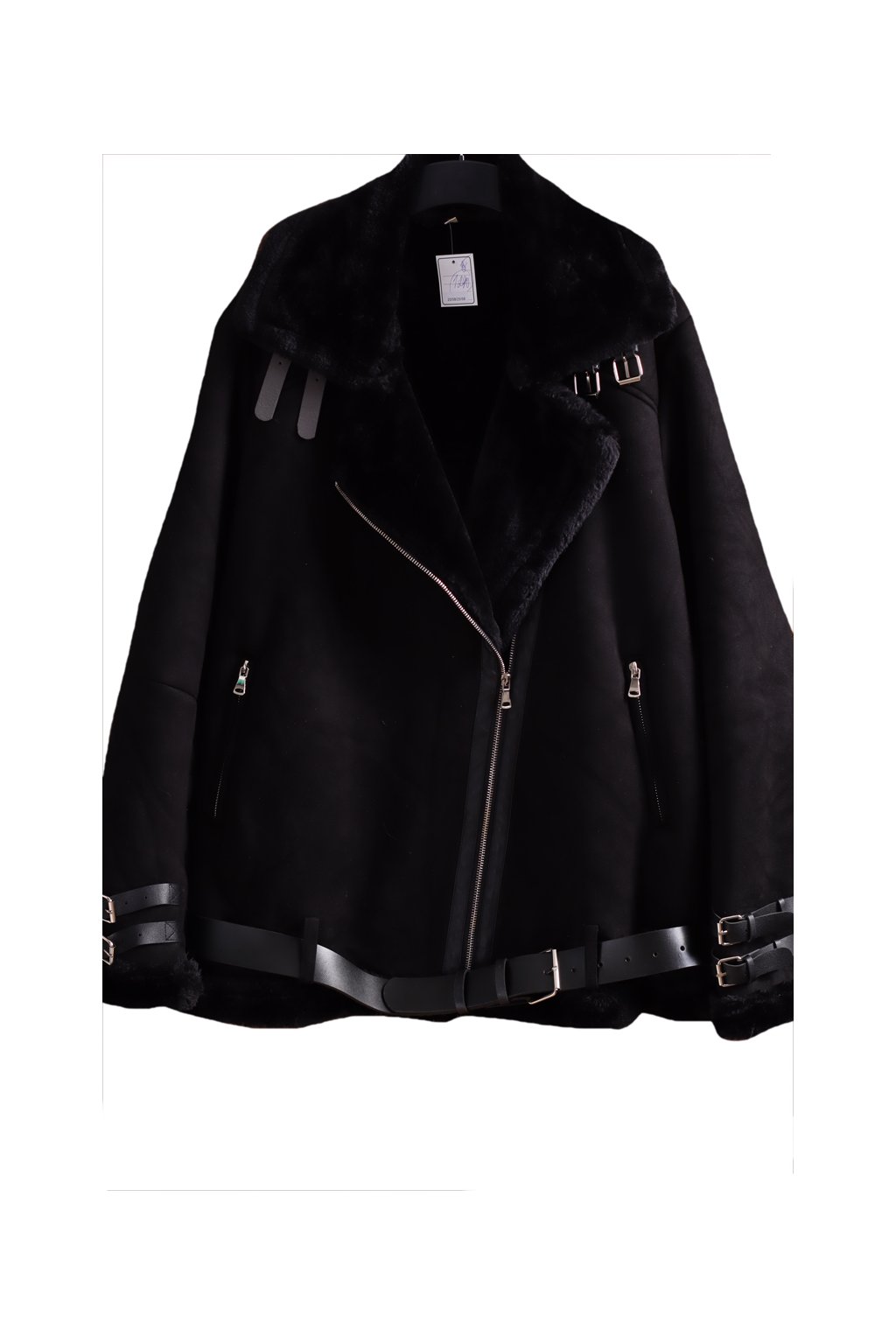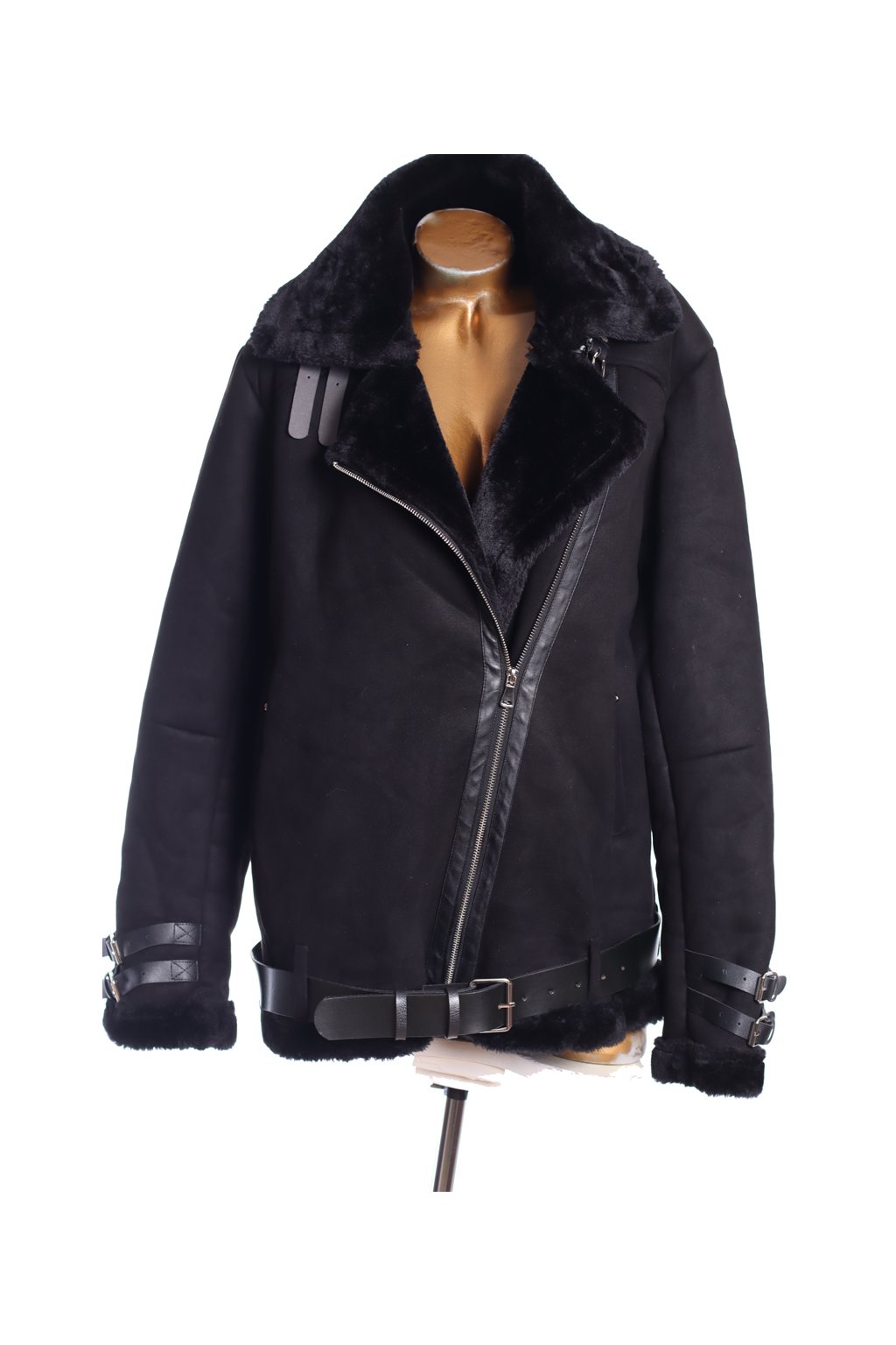 Dámský semišový černý křivák s kožíškem / XXXL (48/50) / UK 20/22 / ANGLIE