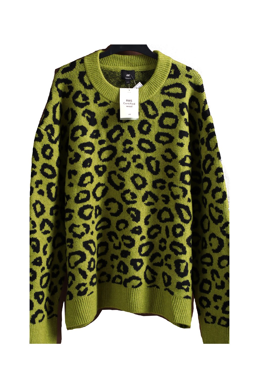 Dámský silný zimní zelený svetr s černým leopardím vzorem / H&M / XXXXL (50/52) / UK 22/24 / ANGLIE