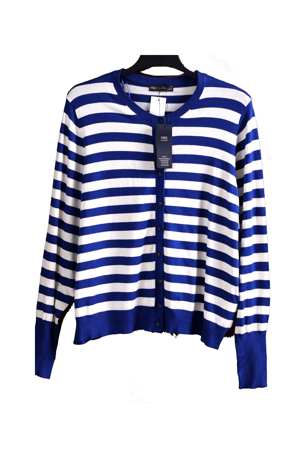 Dámský jemný, modro-bílý svetr / M§S / XXXL (50) / ANGLIE 22
