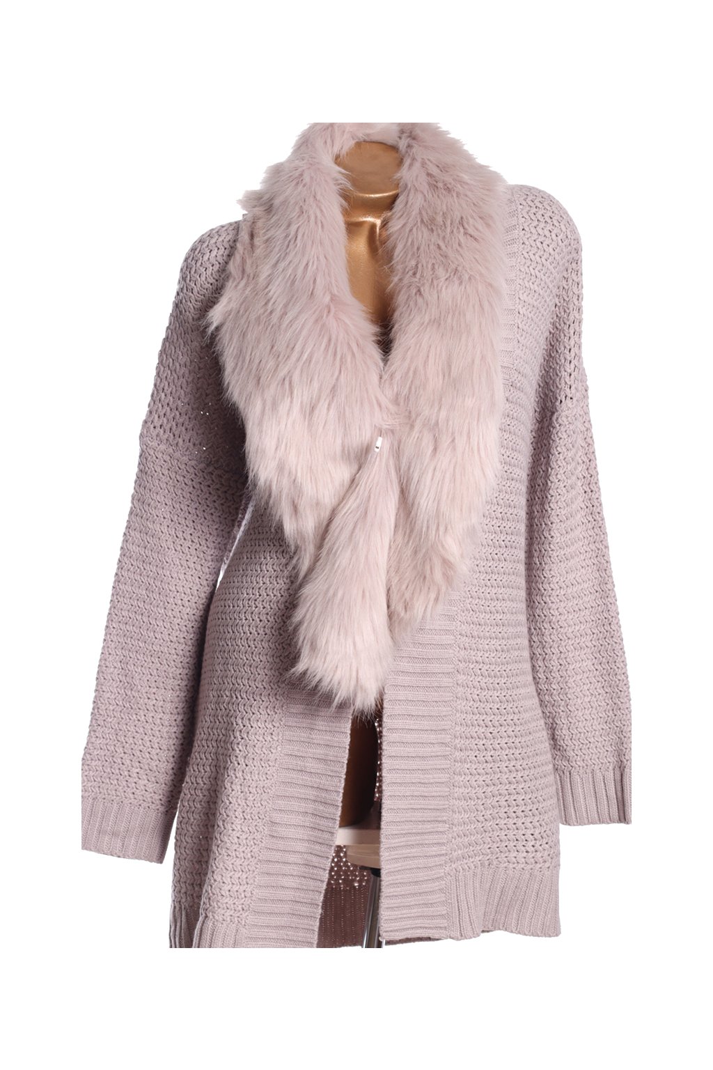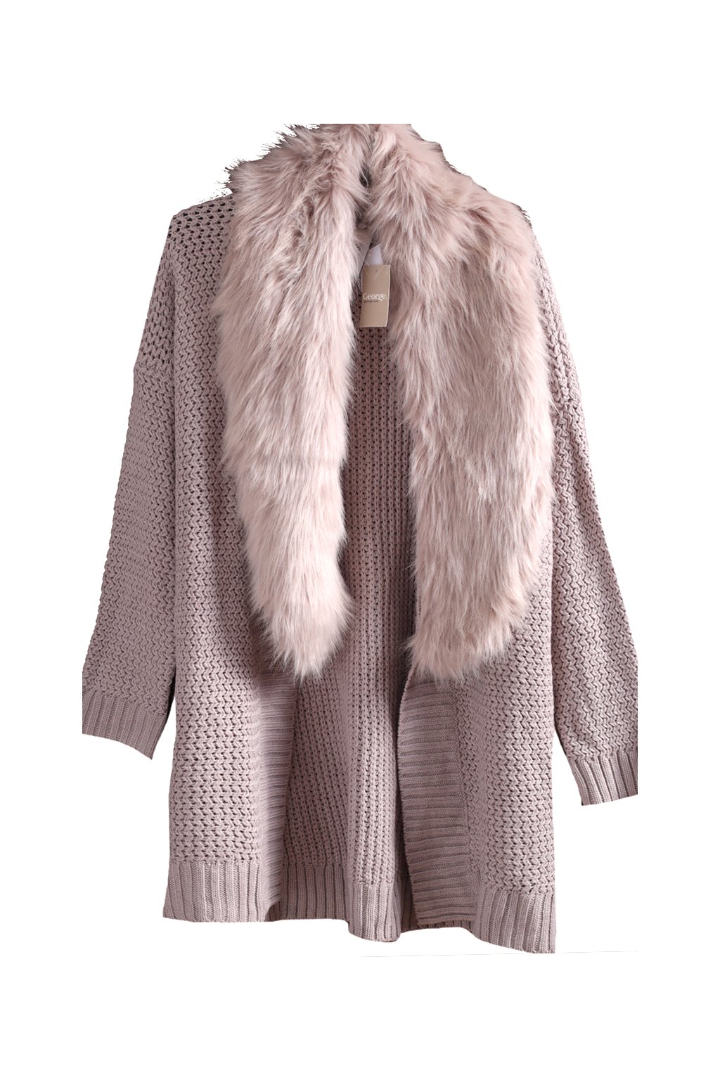 Dámský svetrový šedý kardigan s odepínacím kožíškem / GEORGE / XXXL (48) / UK 20 / ANGLIE