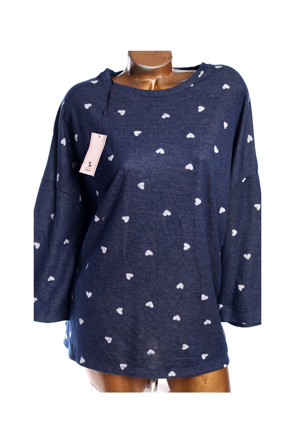 Dámský tmavě modrý lehký svetřík se srdíčky / Tu / XXXXL (52) / UK 24 / ANGLIE