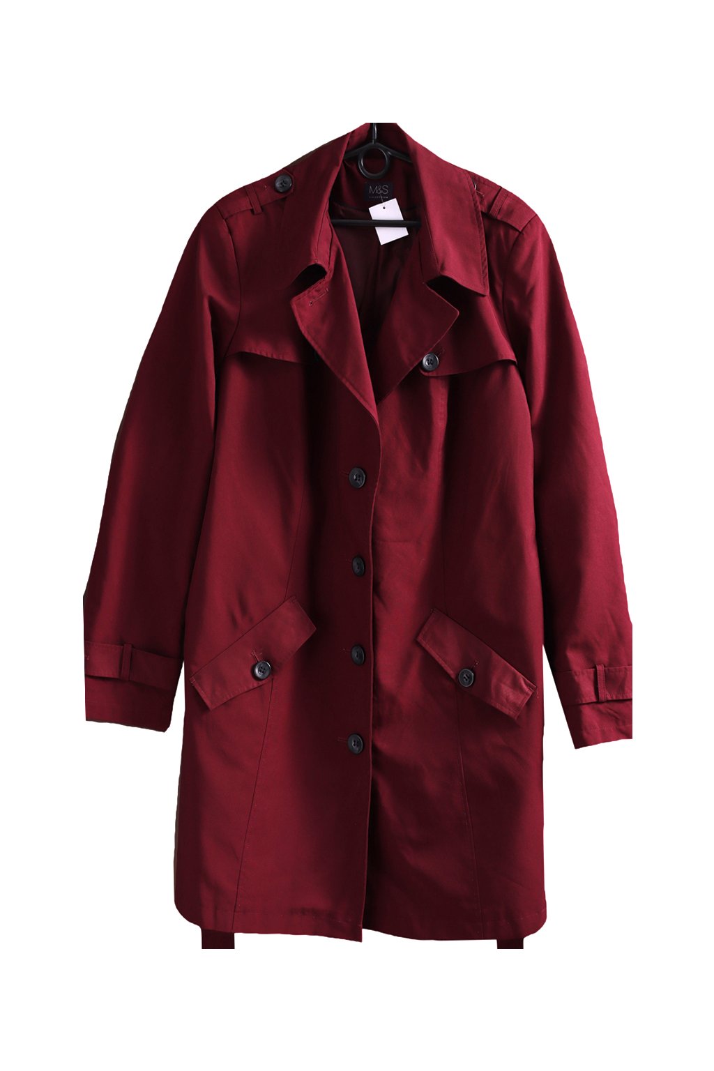 Dámský značkový vínový podzimní kabátek - trenčkot / Marks & Spencer / XXXL (50/52) / UK 22 / ANGLIE
