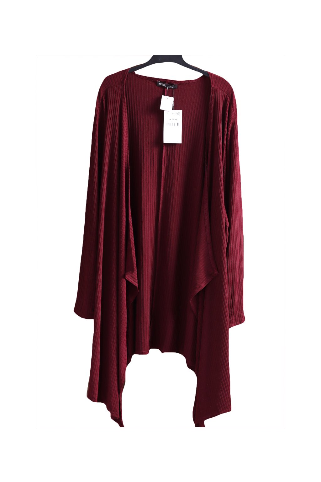 Dámský vínový žebrovaný kardigan / YOURS / XXXXL+ (66-68) / UK 38-40 / ANGLIE