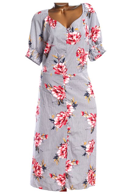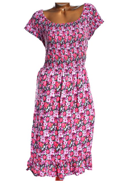 Dámské letní šaty žluto černé - na prsou elastické žabičkování / CURVES / XXXL (48) / UK 20 / ANGLIE