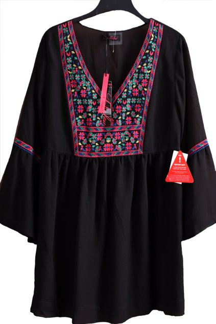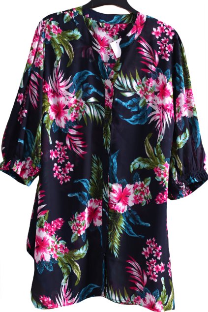 Dámská luxusní černá delší halenka/šaty s barevnými květy / YOURS / XXXL (50/52) / UK 22/24 / ANGLIE
