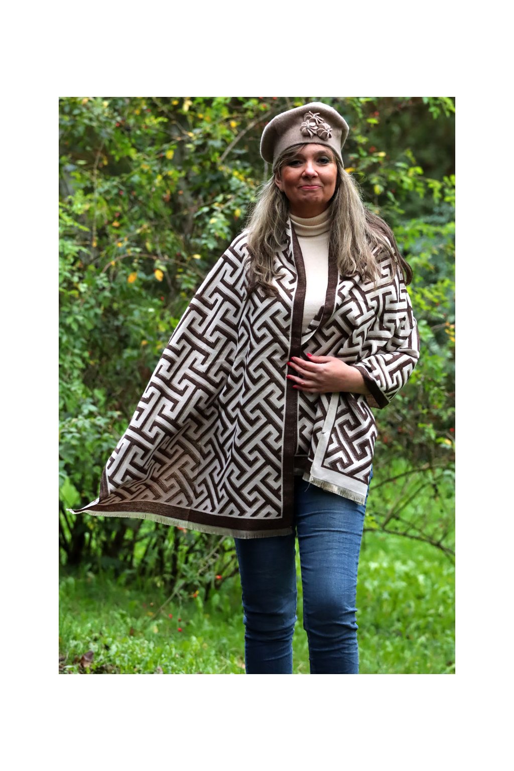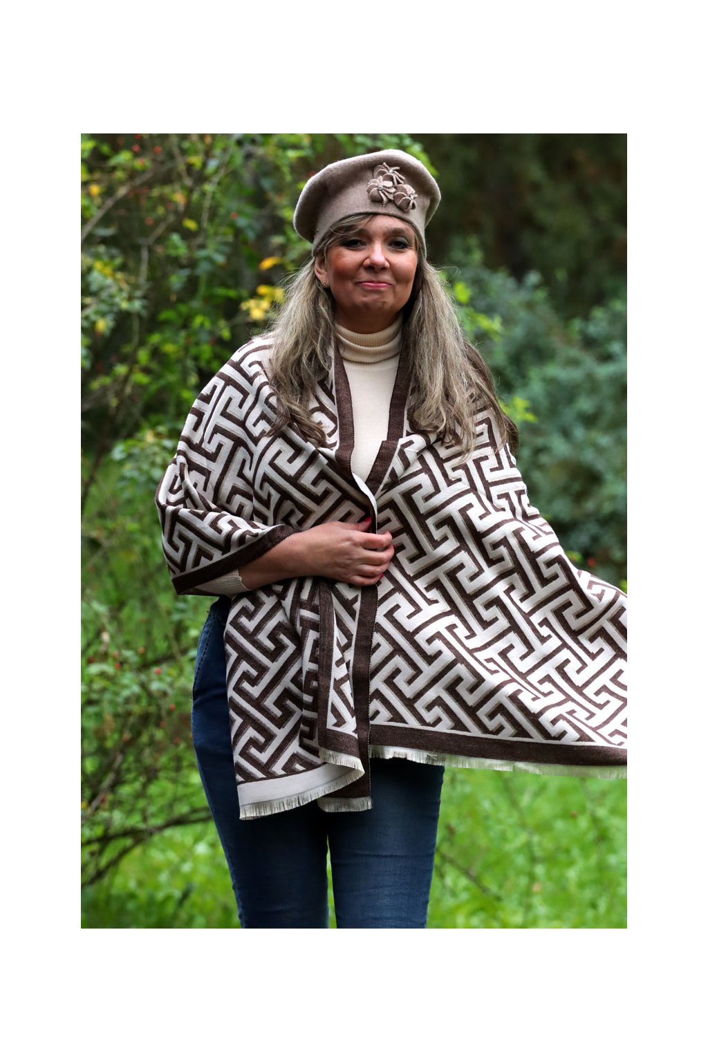 LUXUSNÍ VELKÝ KAŠMÍROVÝ ŠÁL - HNĚDÁ/KRÉMOVÁ SE ZLATOU TŘPYTIVOU NITKOU - MÍRY 200 cm*70 cm / MODA ITALY