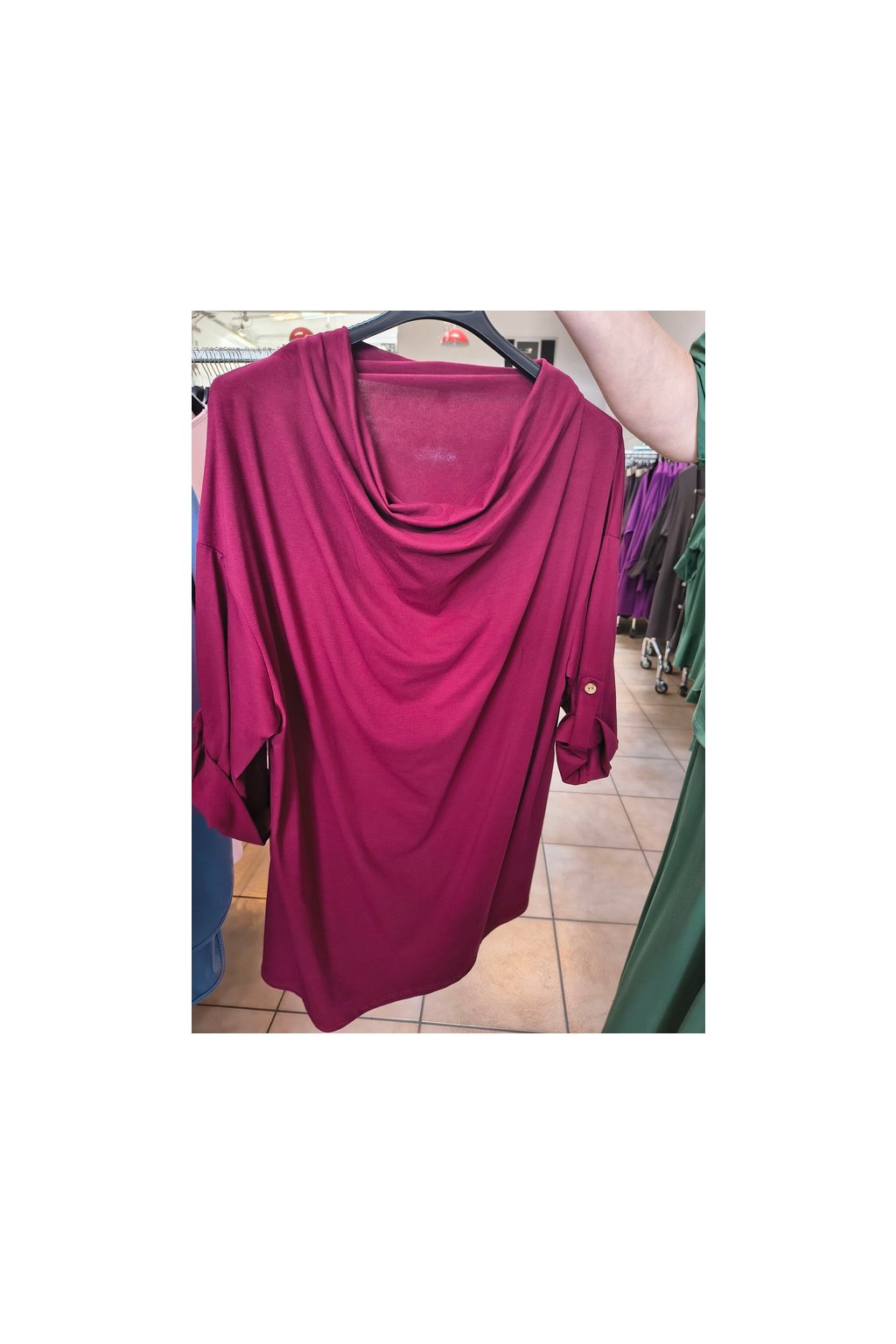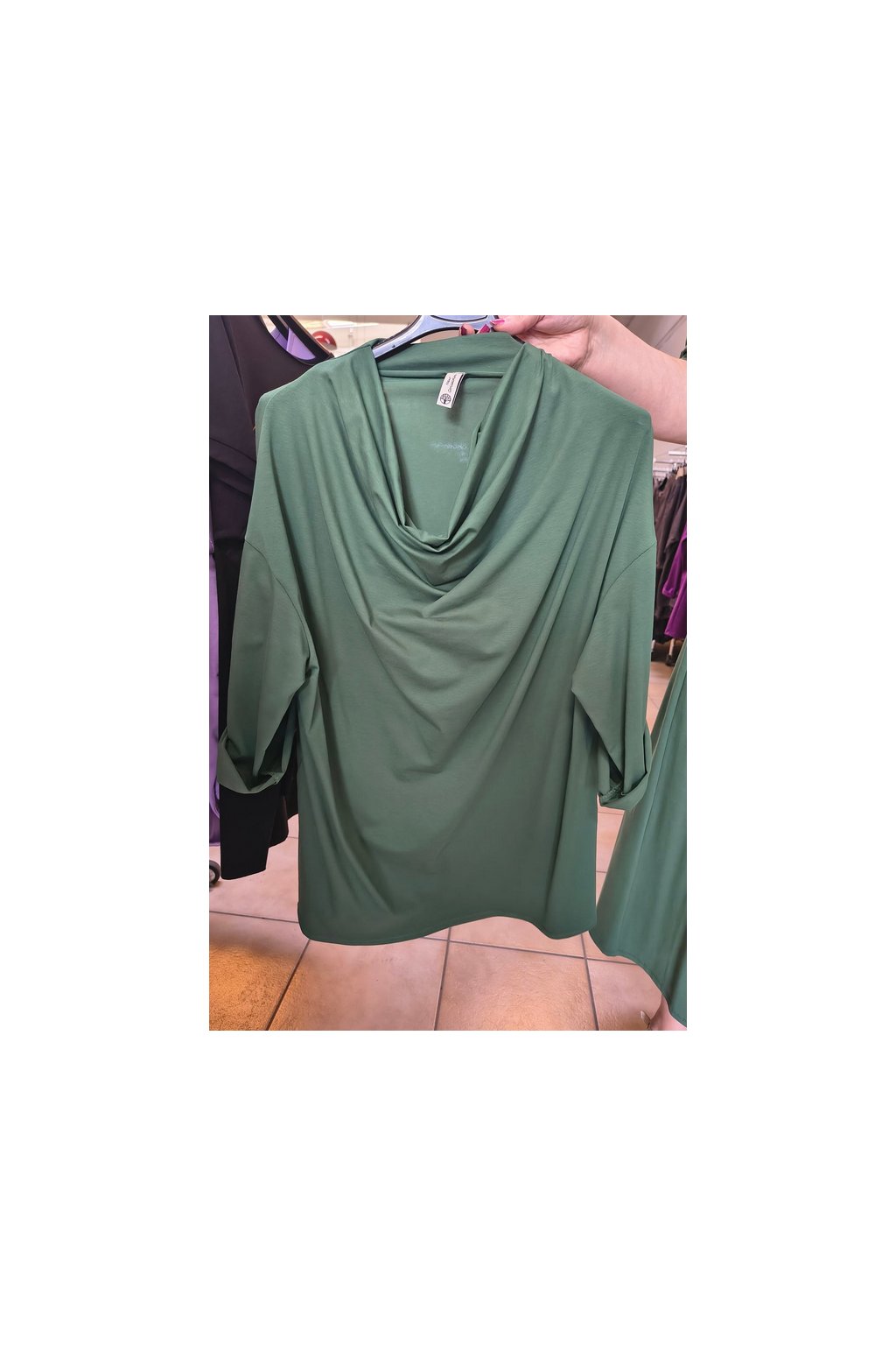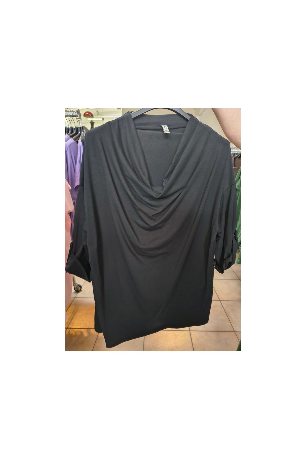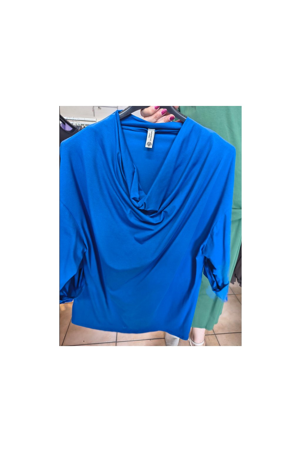 Příjemná halenka /bavlna+elastan/ s vodou na dekoltu - barvy na výběr . prsa v klidu 125 cm po natažení 150 cm, délka 80 cm, vel 46/48/50/Itálie