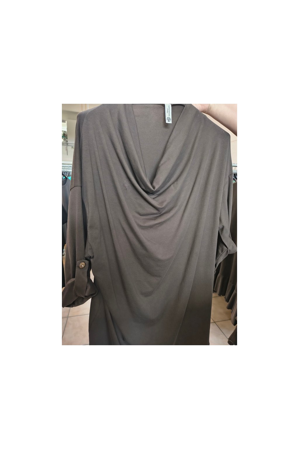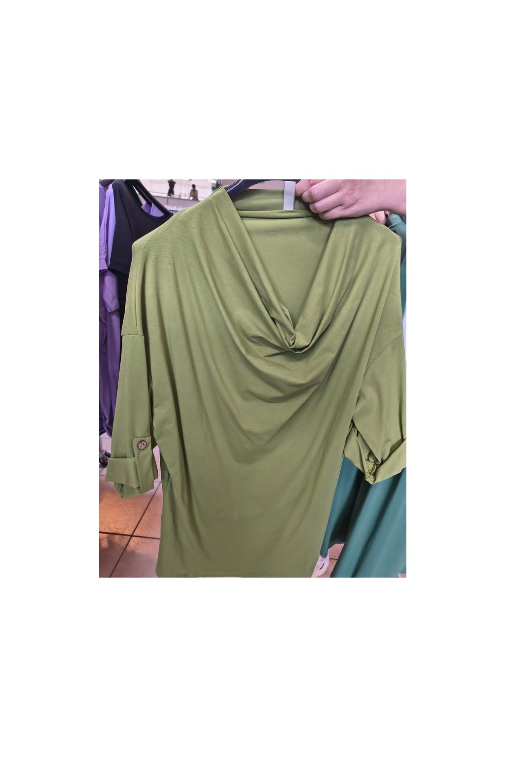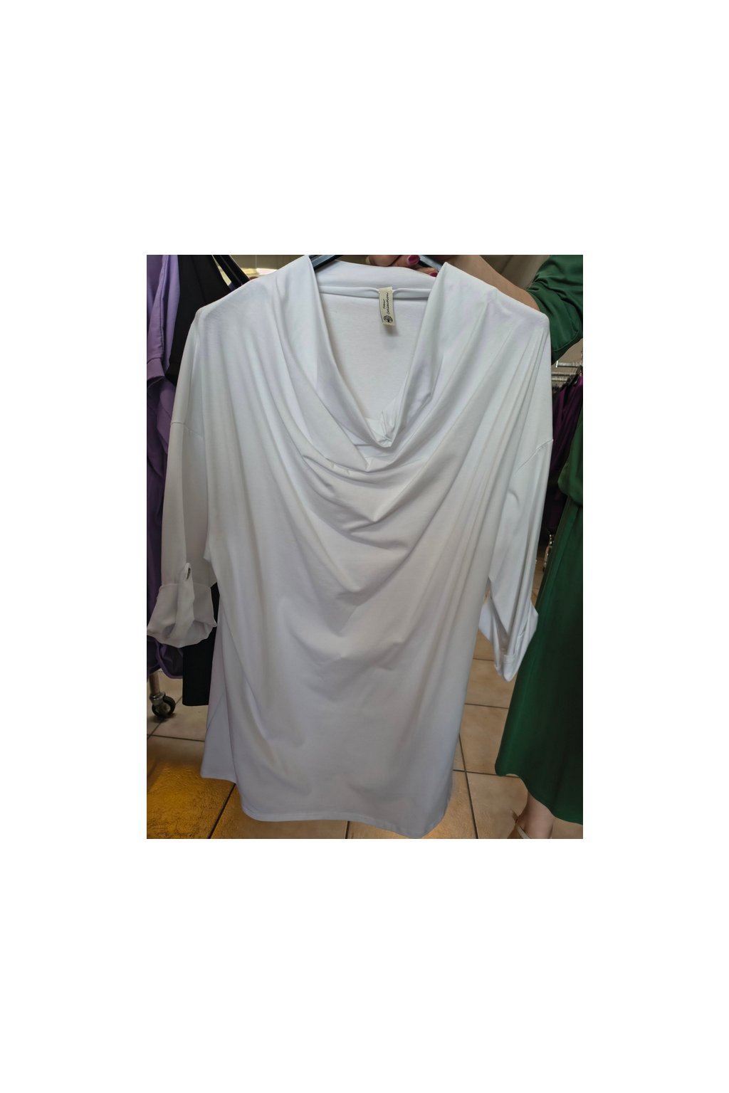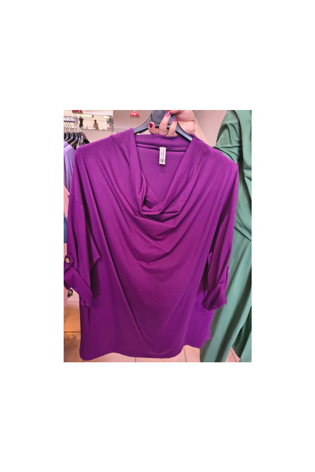 Příjemná halenka /bavlna+elastan/ s vodou na dekoltu - barvy na výběr . prsa v klidu 125 cm po natažení 150 cm, délka 80 cm, vel 46/48/50/Itálie