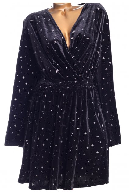 Dámské černé, zimní sametové šaty se zlatými tečkami / GEORGE / XXXL (50) / ANGLIE - na štítku UK 22