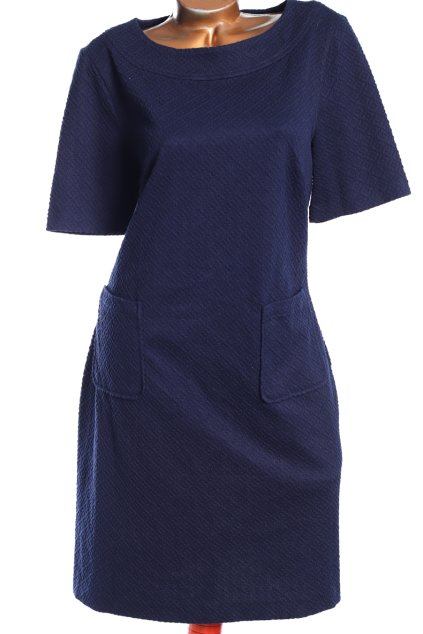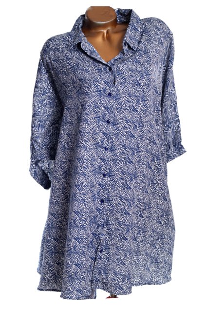 Dámské tmavě modré elastické šaty s modro-bílými vzory / Cotton Traders / XXXL (50) / UK 22 / ANGLIE